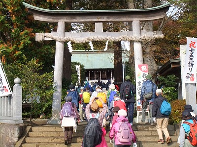 ウオーキングの人で賑わう社頭